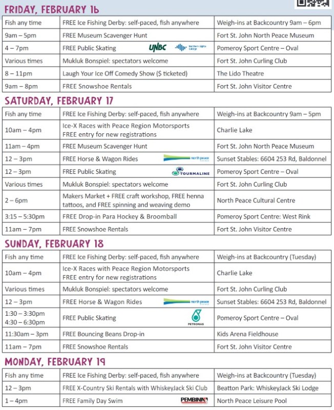In addition to the activities at Centennial Park, there are many events throughout the community. From ice fishing and Ice-X at Charlie Lake, to wagon rides at Sunset Stables, to a Museum Scavenger Hunt, to free skating all weekend long at the Pomeroy Sports Centre, there is something for everyone no matter your age this weekend.