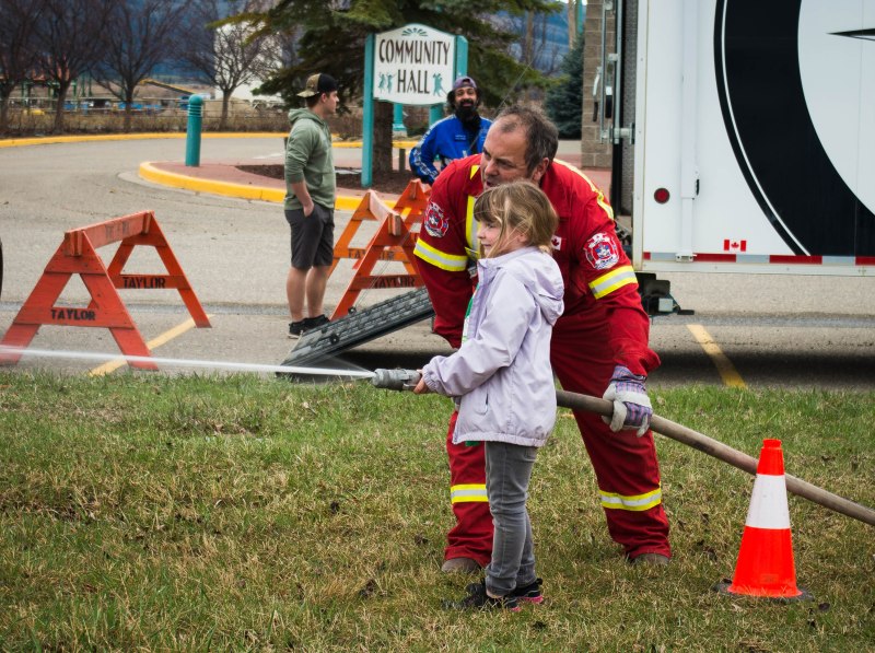 On Wednesday, the District of Taylor kicked off its celebration of Emergency Preparedness Week with a BBQ, emergency vehicle displays – with opportunities for kids to check out the insides of fire trucks and play with fire hoses – and a series of displays and information inside the Community Hall.