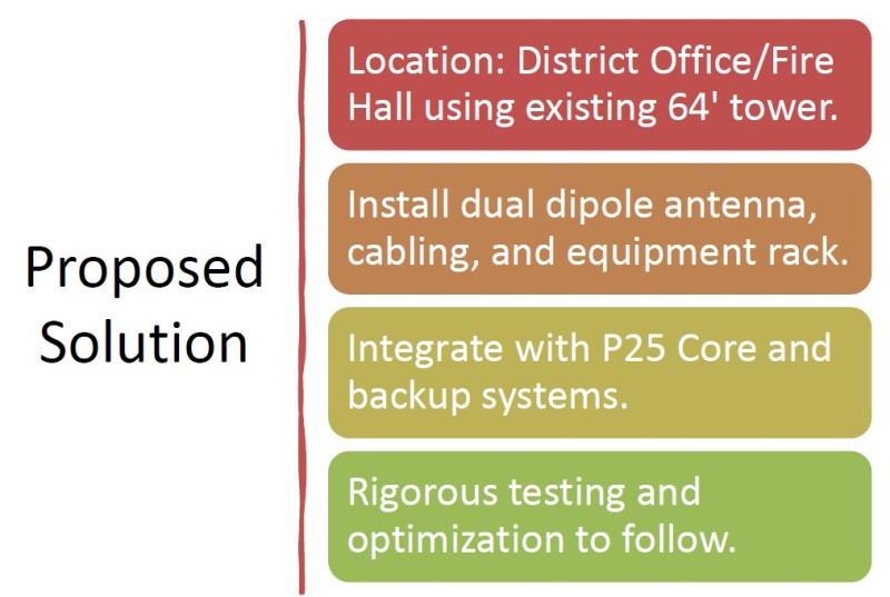 “With the issue around transmitting and receiving, we have engaged Petron Communications, along with Harris Radios to put their engineers onto the problem and provide a viable solution. The proposed solution will provide much better coverage within the district, both along Highway 29 in Area E and portions of Highway 29 in Area B,” said Burrows.