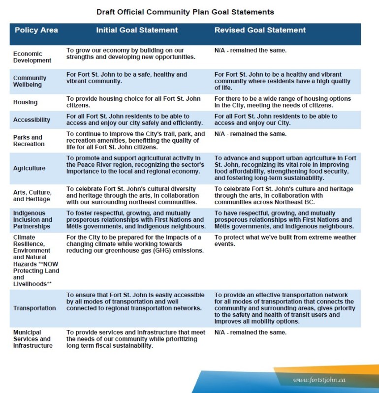 “To provide housing choice for all Fort St. John citizens” but that has changed to “For there to be a wide range of housing options in the City, meeting the needs of citizens,” reflecting the specific needs of the community.