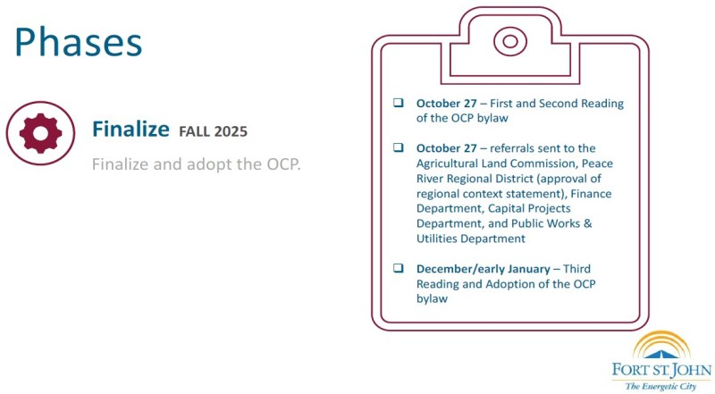 The first phase of OCP development took place over the fall and winter when staff asked the community what they liked and didn’t like about Fort St. John, and what residents’ areas of concern were, with the results presented to the CoW on March 24.
