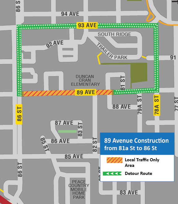 Starting today – Monday, April 14 – 89 Avenue between 81A Street and 86 Street will be closed, open to local traffic only as crews begin construction on the second phase of the 89 Avenue project.