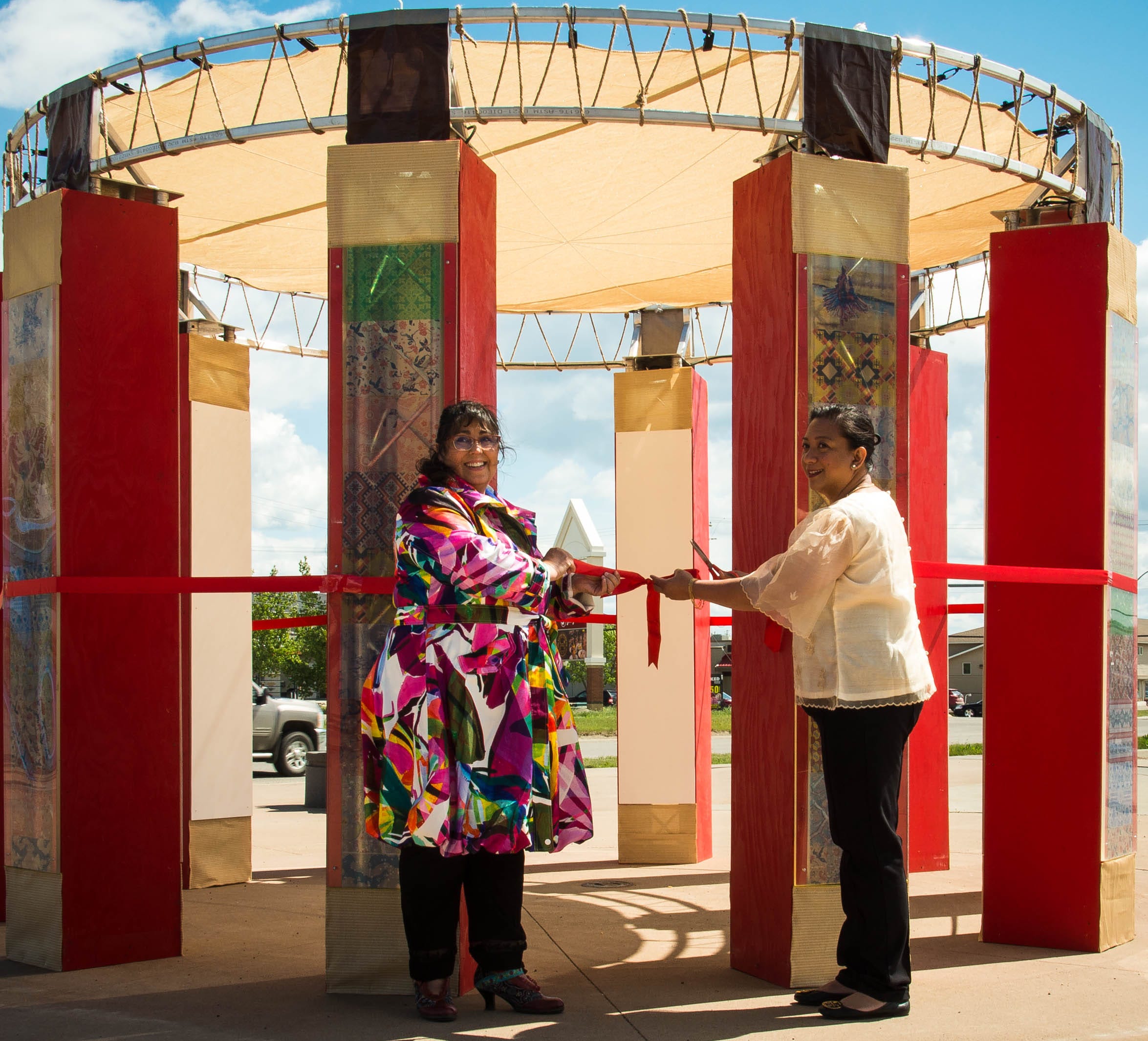 Citing the drum as one of the most identifiable features of First Nations culture in the region which is one of the reasons she chose to base her artwork on a drum, Castrillo-Hill said her experiential installation “inspires us to come together and move to the unified beat of our hearts,” at the June 17 unveiling.