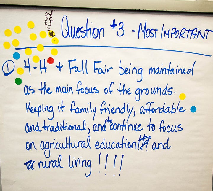 When asked what is most important about the master plan, participants overwhelmingly said that the North Peace Regional Park needs to retain its primary function as Fall Fair Grounds and home to the 4-H Achievement Days.
