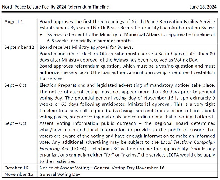 If the board had been able to stick to the timeline, at the July 18 regional board meeting, direction would have been given to staff to prepare a bylaw to establish the service area and a loan authorization bylaw, to send to the Ministry of Municipal Affairs for approval.