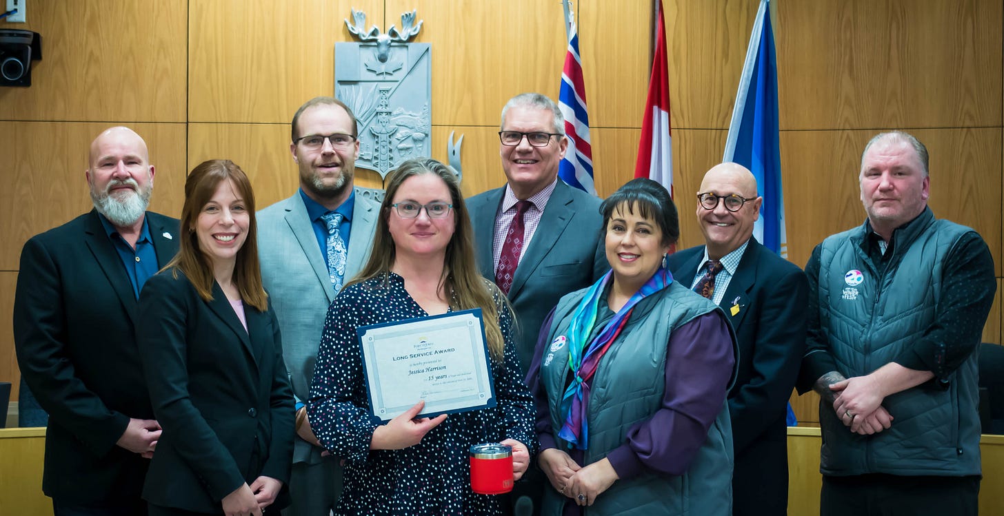 She is continuing her education by working on a Public Relations Diploma, and Mayor and Council are looking forward to many more years of work with Harrison.