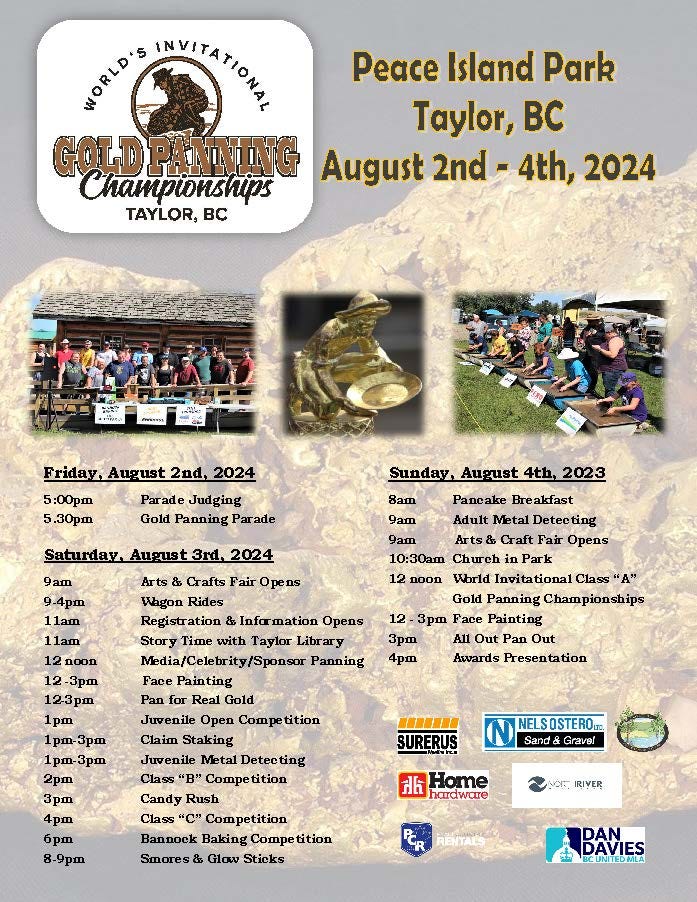 Since 1912, gold panners have been travelling to Taylor for the World’s Invitational Gold Panning Championships, this weekend is no exception. Events are taking place at Peace Island Park this weekend. Weather looks to be great for this three-day event, which began with the parade today. Fun continues Saturday with a variety of events, including claim staking, media/celebrity panning, Class B and C event panning, as well as activities and events for kids. Sunday is the Class A panning event, which was won last year by Garrett Gejdos whose family has been participating in the event since 1974.