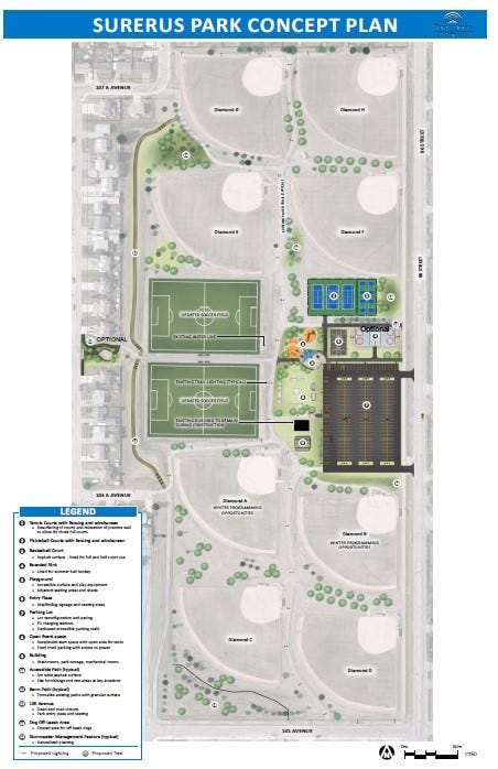 Proposed additions to Surerus Park include a basketball court, a dog park, a hockey rink and pickleball court.
