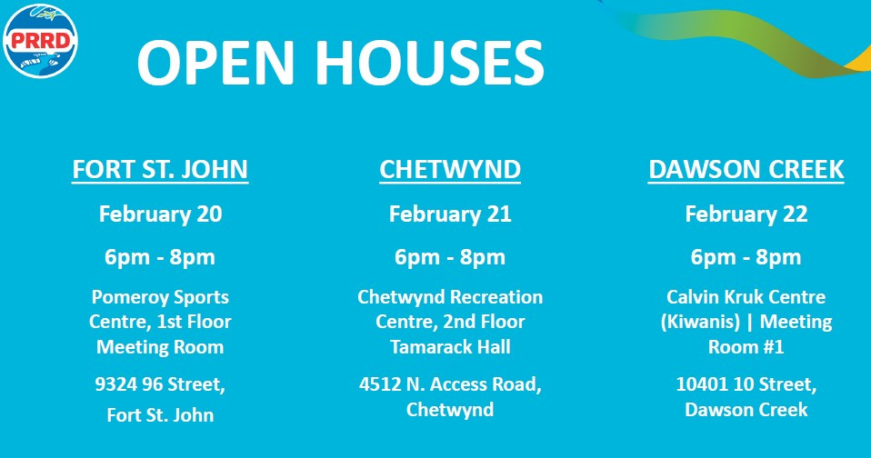 Fort St. John’s Open House will be on February 20 at the Pomeroy Sports Centre from 6-8 p.m.; Chetwynd’s on February 21 at Tamarack Hall from 6-8 p.m.; and Dawson Creek’s will be on February 22 in the Calvin Kruk Centre from 6-8 p.m.