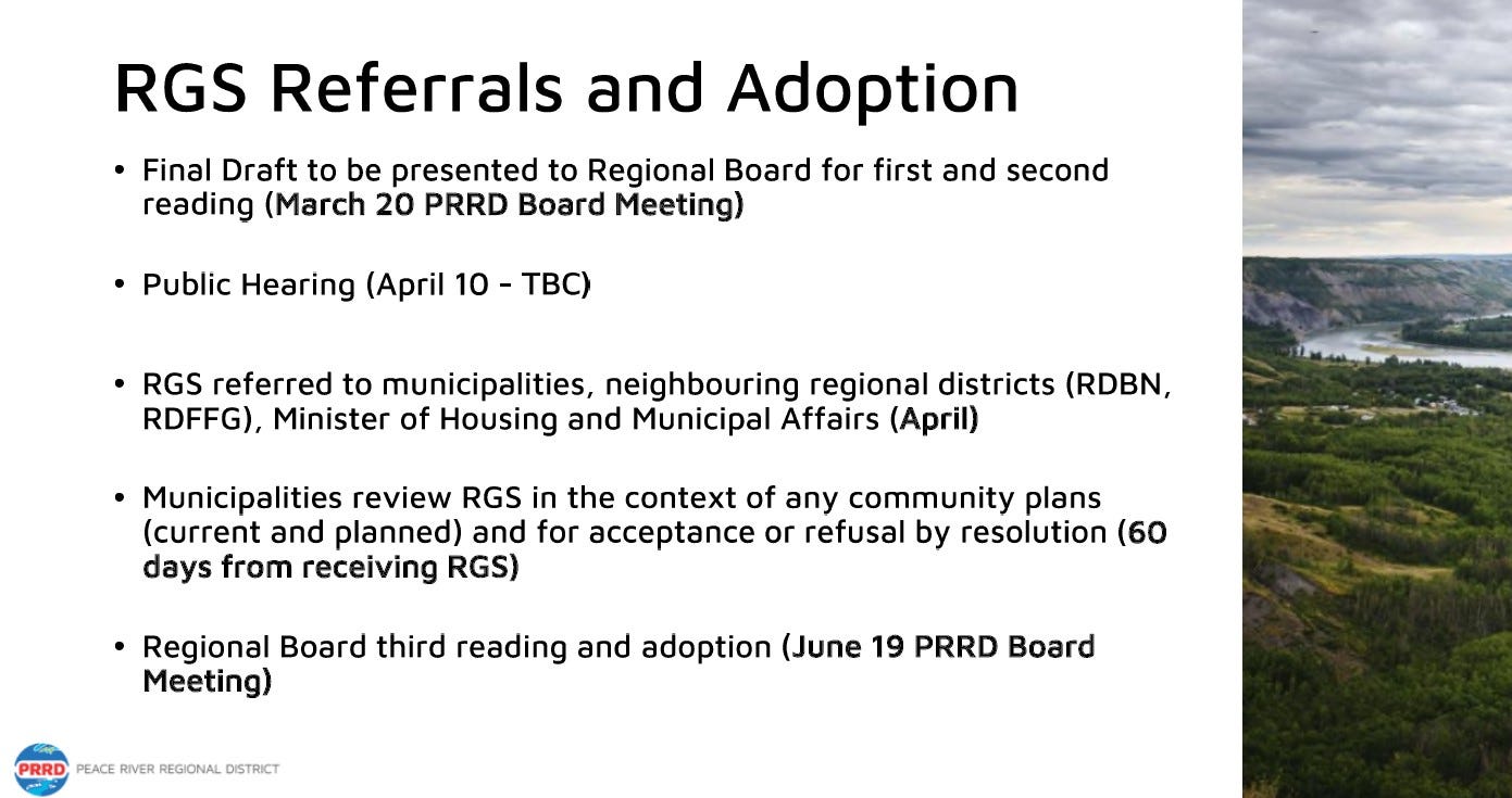 The next step is presenting the draft RGS to member municipalities. The first municipality to have a presentation from Murphey is the District of Taylor at their meeting on February 24.