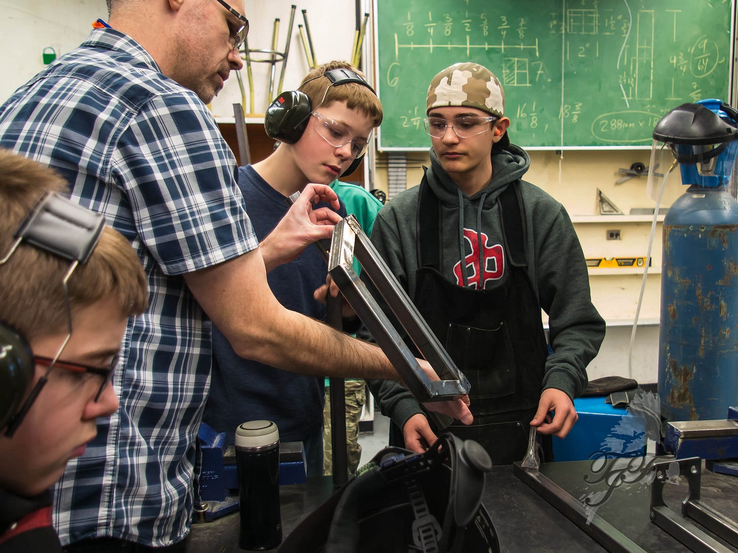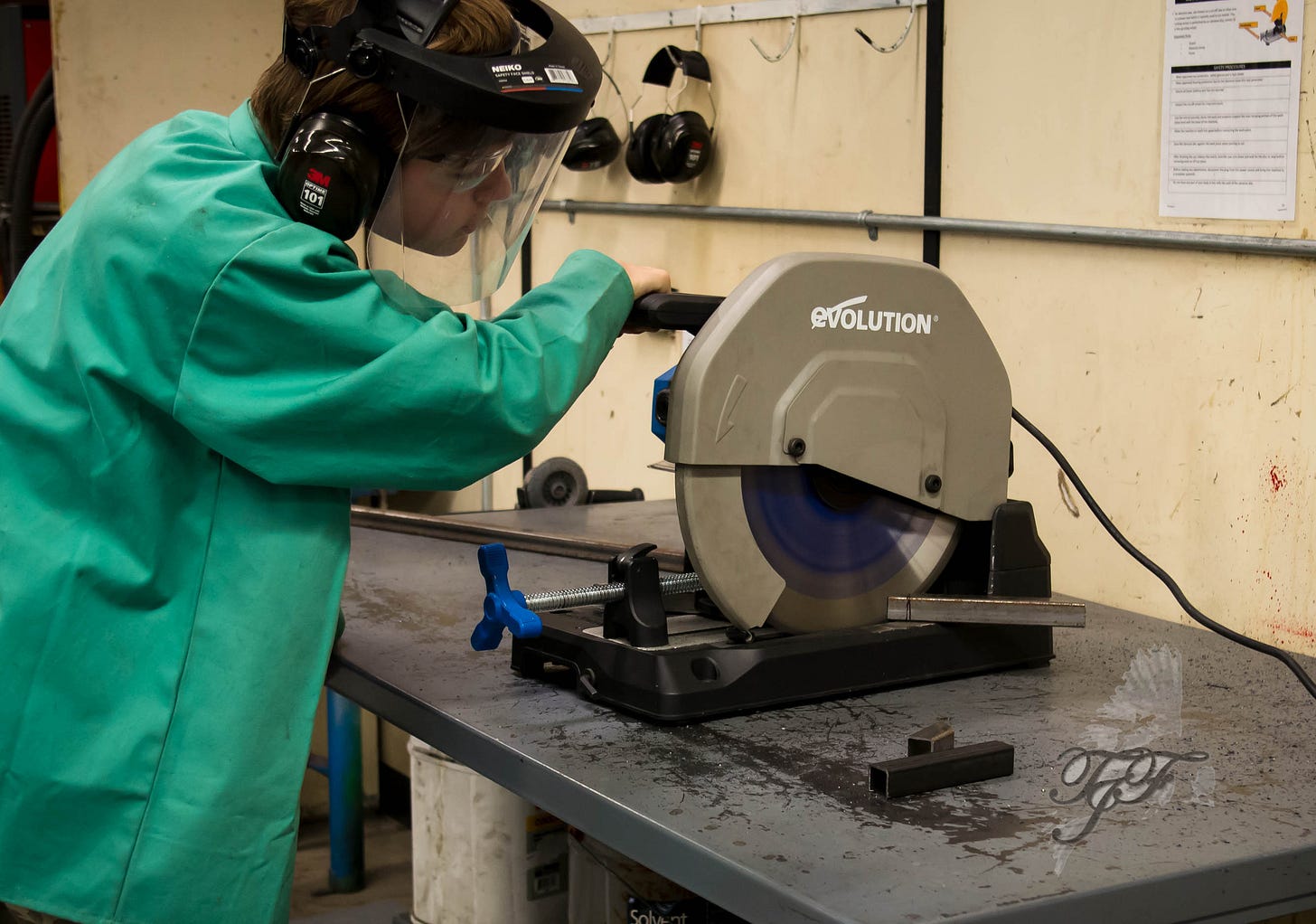 Before they get their hands on any tools, students are taught all the safety procedures, from wearing hearing protection, face shields, putting up screens to stop others from getting welding flash when the kids are welding, unplugging the saw ahead of time before doing anything, safety is paramount, McColm said.