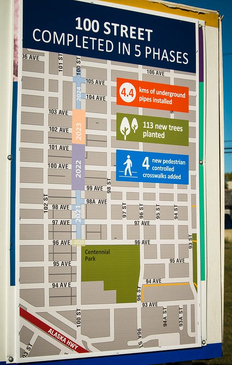 Five years of construction, traffic distruptions and detours finally came to an end three weeks ago, when 100th Street finally, permanently re-opened to traffic. On Saturday, Fort St. John city council celebrated the completed project with a ribbon cutting ceremony, BBQ, face-painting and other kids’ activities as well as a downtown business crawl contest.