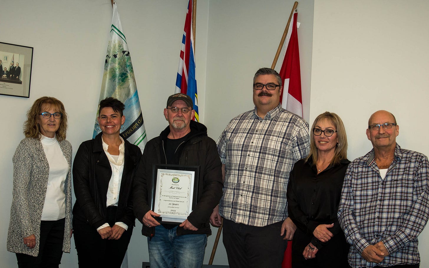The District of Taylor honoured long-time employee, Mitch Clark with a 20-year service award at the regular council meeting on Monday.
