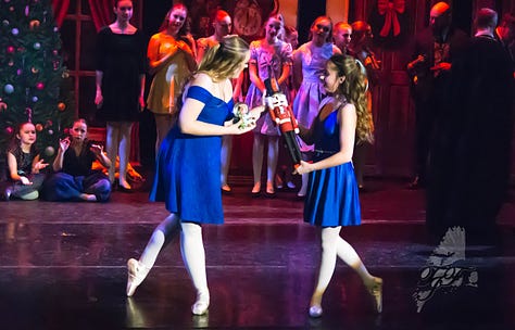 The main characters of Clara (Temperance & Macey), Sugar Plum Fairy (Emily & Kenlee) and the Nutcracker (Sebastian) are played by senior Northern Dance Theatre Society dancers who have been in The Nutcracker since they were just starting out in dance.