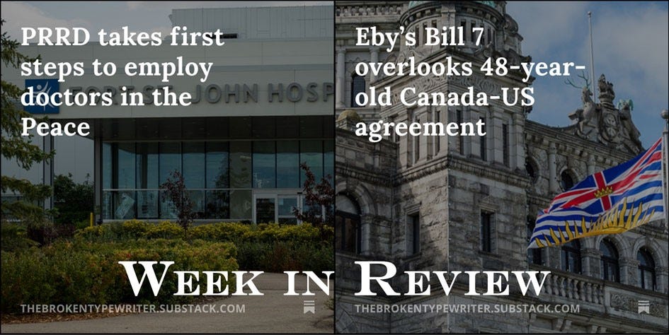 Anyhow, the top story at The Broken Typewriter this week was the news that the Peace River Regional District has taken its first step toward employing doctors. The city of Colwood started a pilot project in December, which Tumbler Ridge director and mayor Darryl Krakowka feels is worth looking into. So much so, that he brought forward a Notice of Motion on the subject.