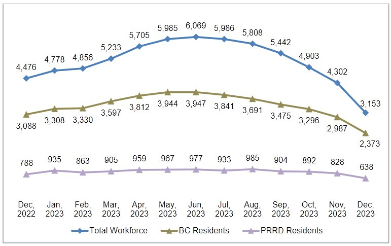 As for employment, the most recent numbers available from BC Hydro are from November 2023, when the project had 4,302 workers, with 69 percent, or 2,987, of those from British Columbia. Of the BC workers, 828 or 24 percent come from the Peace River Regional District.